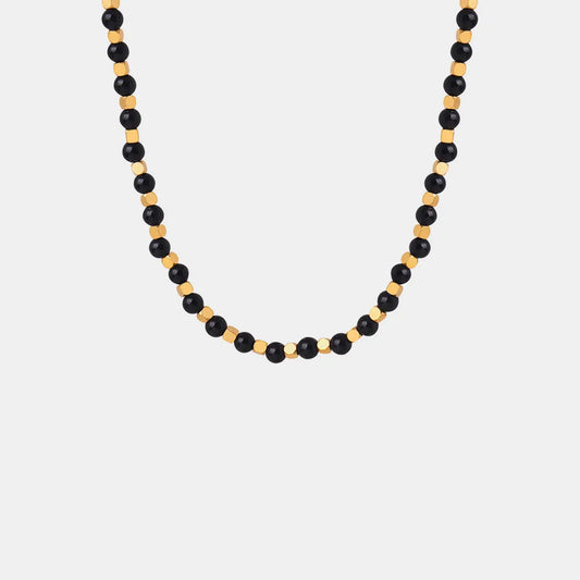Square titanium steel gold-plated natural black agate stone handmade bead necklace jewelry for women
